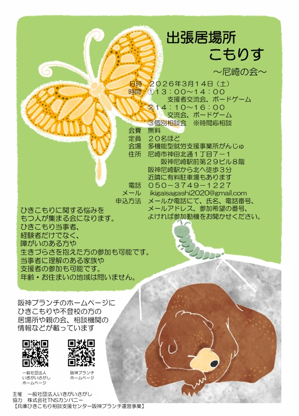 出張居場所こもりす尼崎を開催します